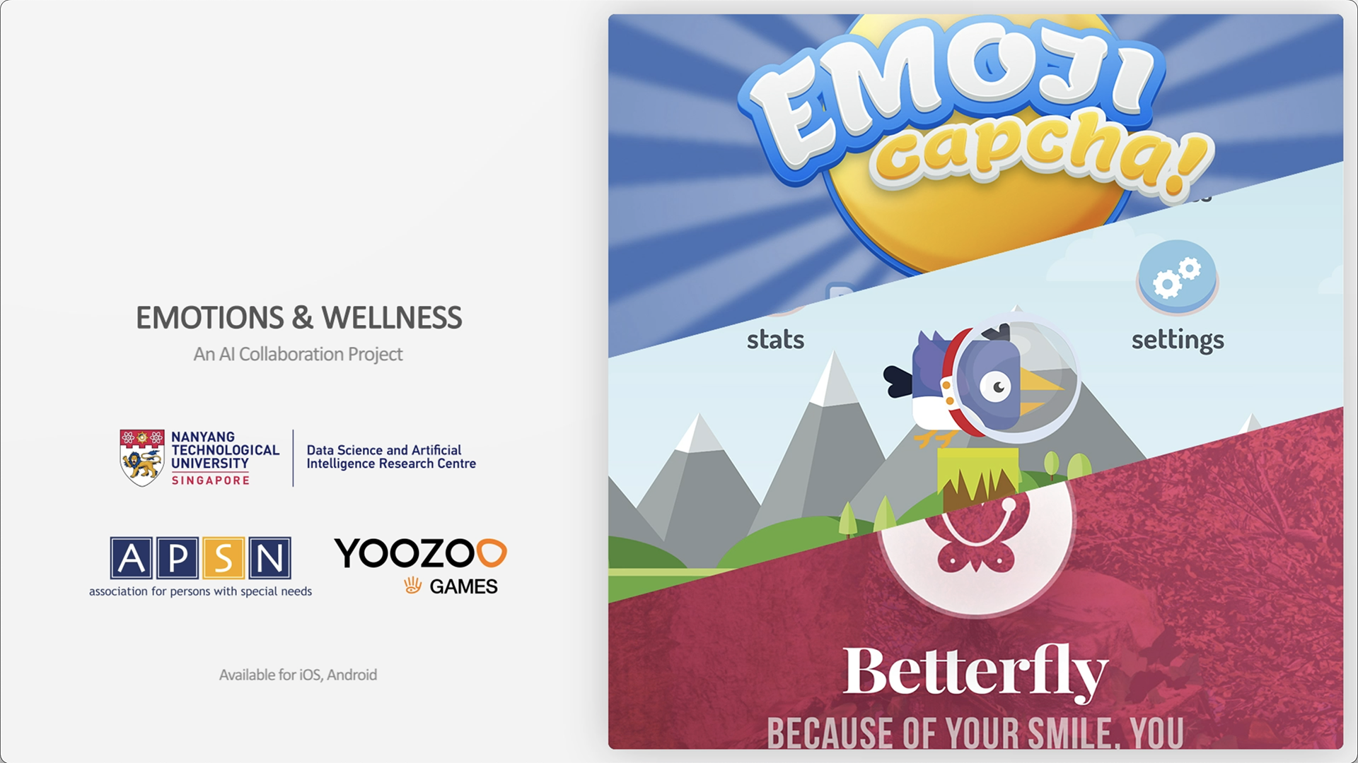 In a collaboration between Nanyang Technological University (NTU), Association for Persons with Special Needs (APSN), and YOOZOO Games, 3 mobile apps were developed to explore Artificial Intelligence (AI), in particular Emotion AI, as a supplementing curriculum tool to enhance the emotion learning capabilities of special needs children in a fun and engaging manner.
